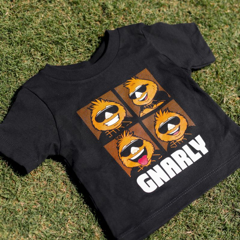 Step into the photo booth with Gnarly! This tee captures our mascot’s biggest moods in a fun, four-shot strip straight from game day energy. Whether he’s smiling, laughing, or sticking his tongue out, Gnarly brings the party everywhere he goes.